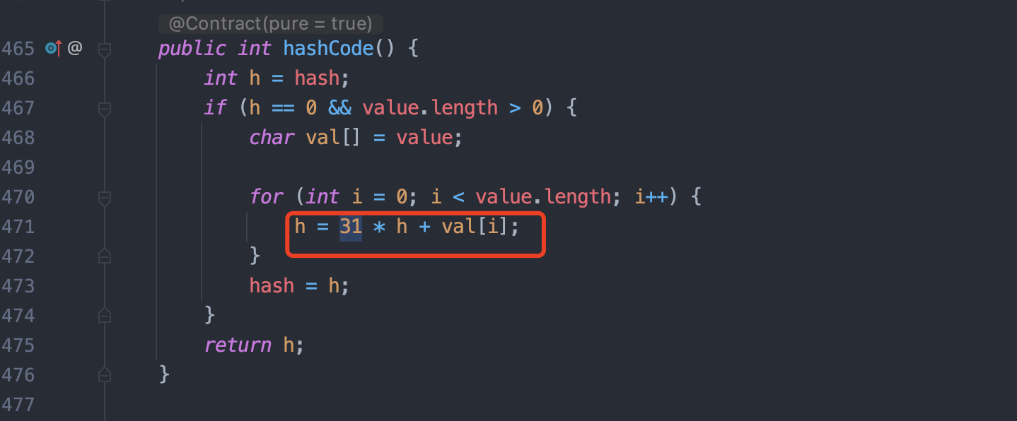 31 是一个奇数,因此 31 * i 的结果可以只使用 31 位来表示。这意味着在计算哈希值时,可以使用位运算来代替乘法运算。